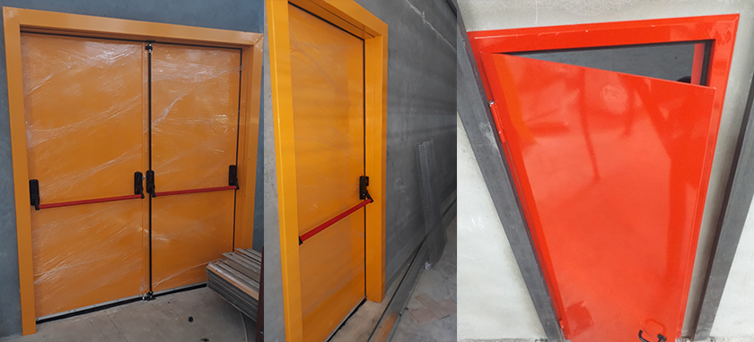 90*210, 95*210 , 100*210 cm standart ölçüler yanında müşteri beklentilerine uygun ölçülerde, 1.2mm kapı kanadı kalınlığı, 1.5mm kasa kalınlığı, tüm ral kataloğu renklerinde elektrostatik fırınlı toz boya, ısıya duyarlı şişen fitil, toz, rüzgar ve duman sızdırmaz soğuk fitil, 2 yıl garantili panik bar kilidi ve istek dahilinde dış kilit, dış kol veya gömme kilit seçenekleri ve 2 yıl garantili yaylı menteşe sistemi ile yangın kapı imalatımız mevuttur.